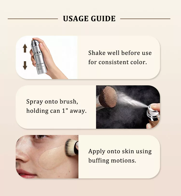 اسپرے کو استعمال کرنے سے پہلے اچھی طرح سے ہلائیں تاکہ یہ یقینی بنایا جا سکے کہ ولسن دیرپا سانس لینے کے قابل ہائیڈریٹنگ فاؤنڈیشن سپرے فارمولے کو یکساں طور پر ملا ہوا ہے۔ کین کو چہرے سے تقریباً 15-20 سینٹی میٹر دور رکھیں اور آنکھ، ناک اور منہ کے علاقوں سے گریز کرتے ہوئے صاف، خشک جلد پر یکساں طور پر سپرے کریں۔ چھڑکنے کے بعد، انگلیوں کے ساتھ نرمی سے تھپتھپائیں یا قدرتی طور پر خشک ہونے دیں تاکہ فاؤنڈیشن جلد پر یکساں طور پر قائم رہے، جس سے ہلکا پھلکا، قدرتی ختم ہو جائے۔ بہتر کوریج یا دیرپا نتائج کے لیے، ضرورت کے مطابق دوبارہ درخواست دیں۔ استعمال کے دوران مناسب وینٹیلیشن کو یقینی بنائیں اور سپرے کو سانس لینے سے گریز کریں۔